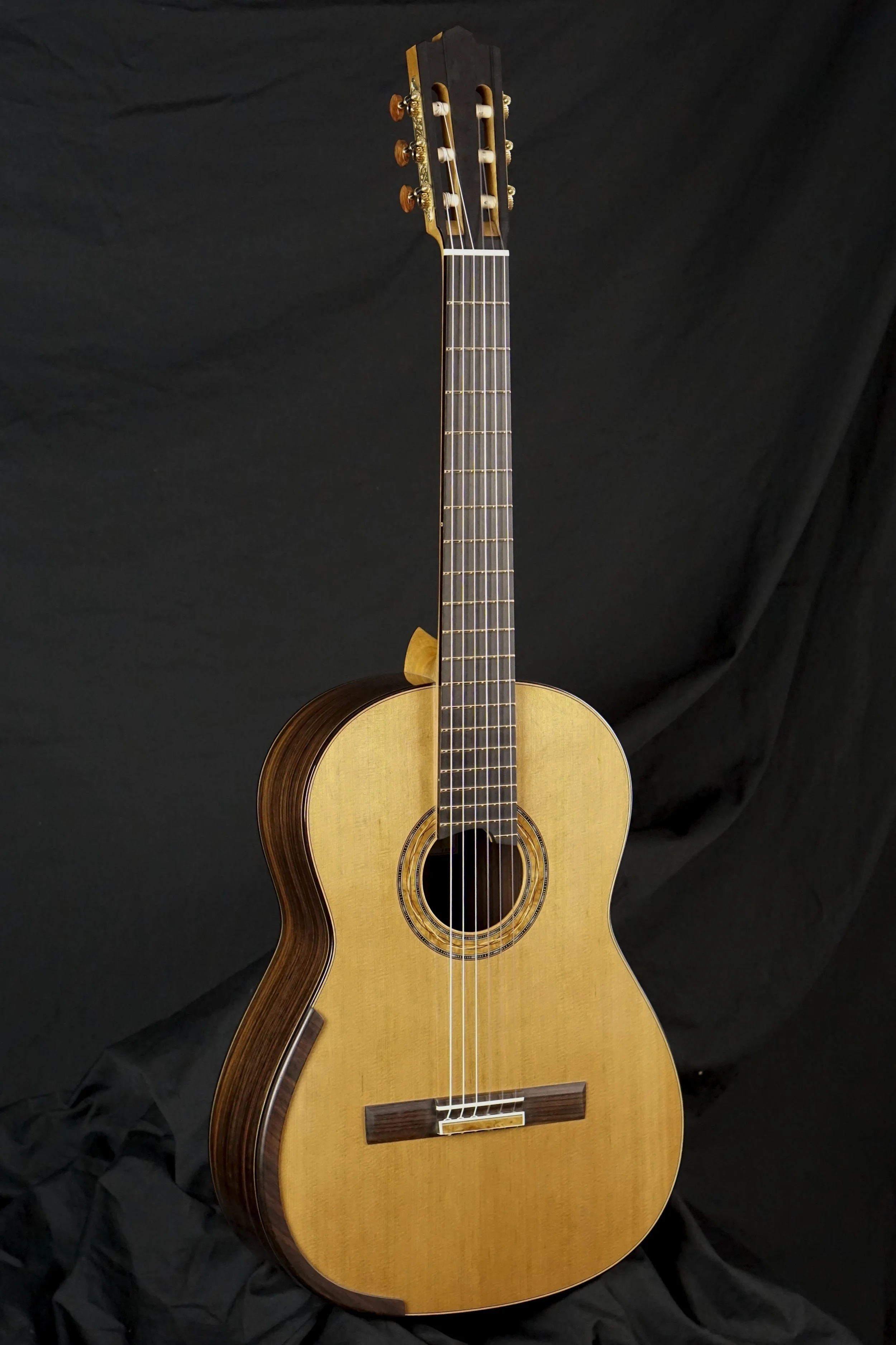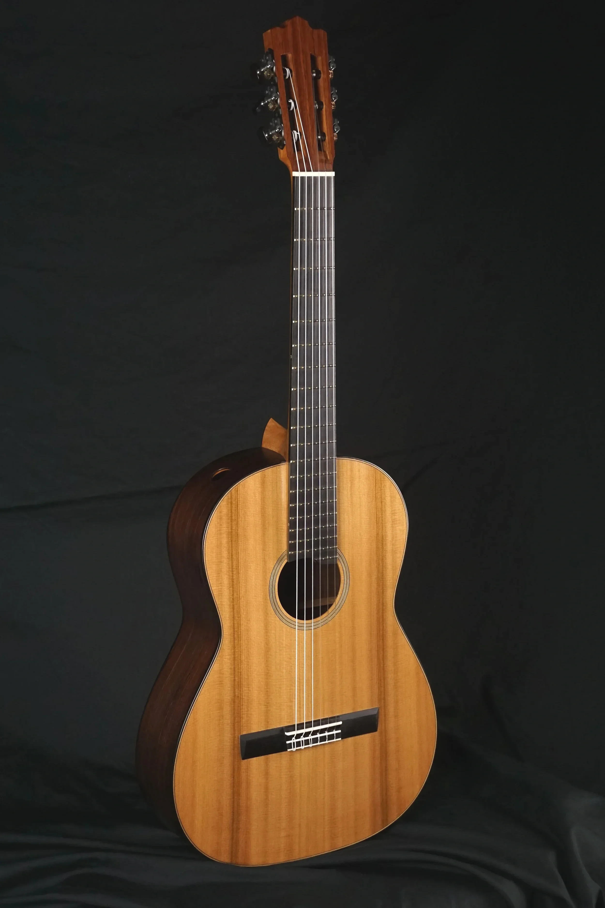 A concert guitar with simplified aesthetic elements, perfect for concert players or students who need the sound and quality of a handmade instrument without all of aesthetic detailing.